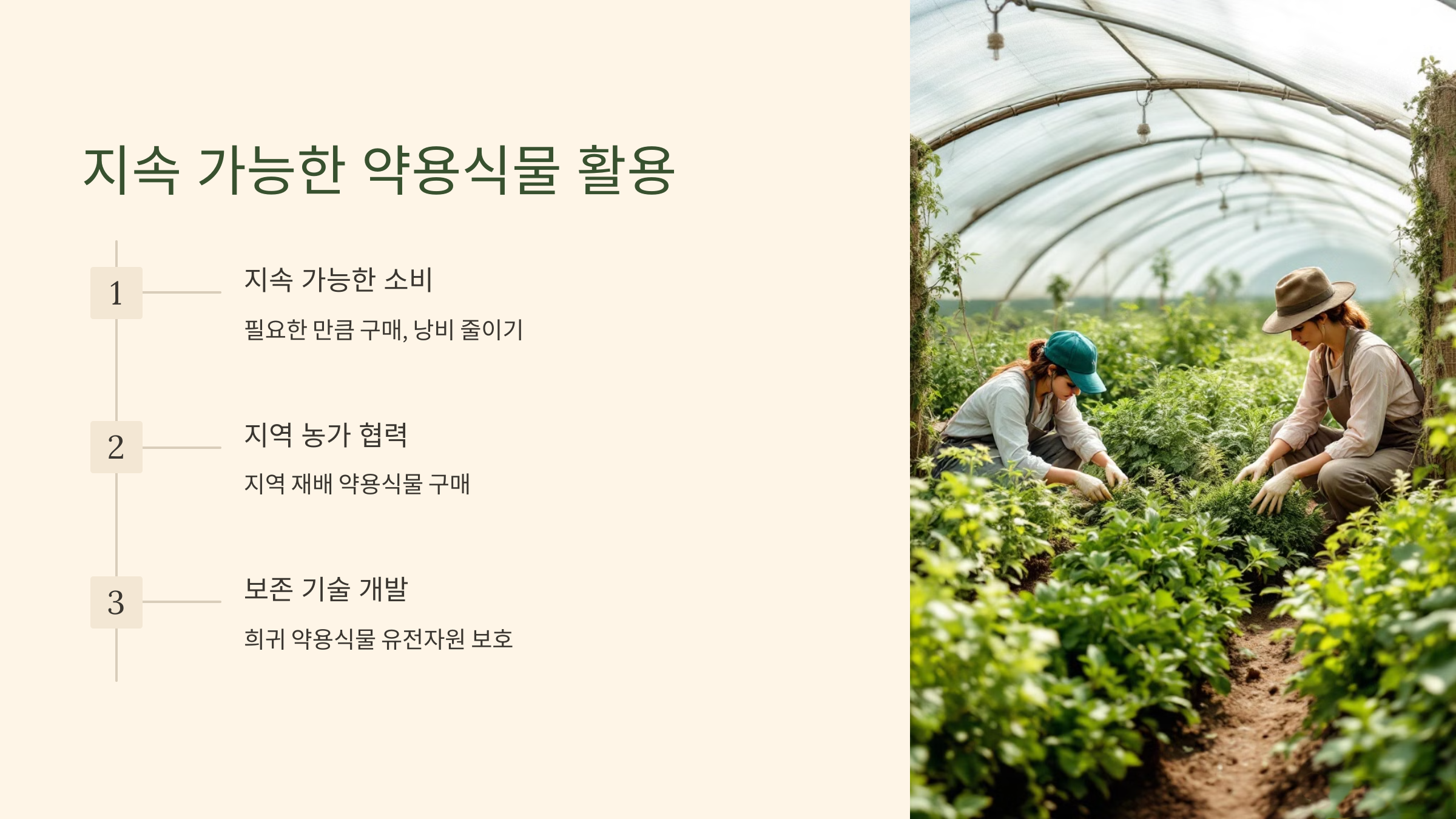 - 지역 농가와 협력: 지역에서 재배된 약용식물을 구매하면 지역 경제를 지원하는 동시에, 신선하고 믿을 수 있는 약재를 확보할 수 있습니다.