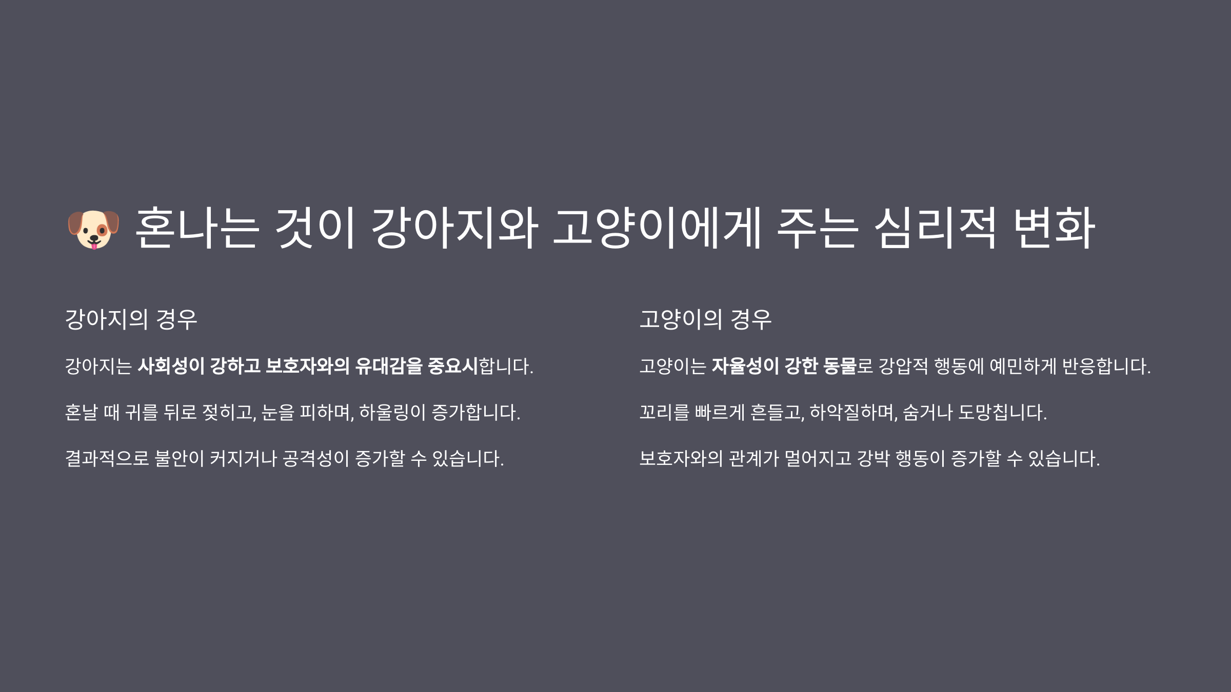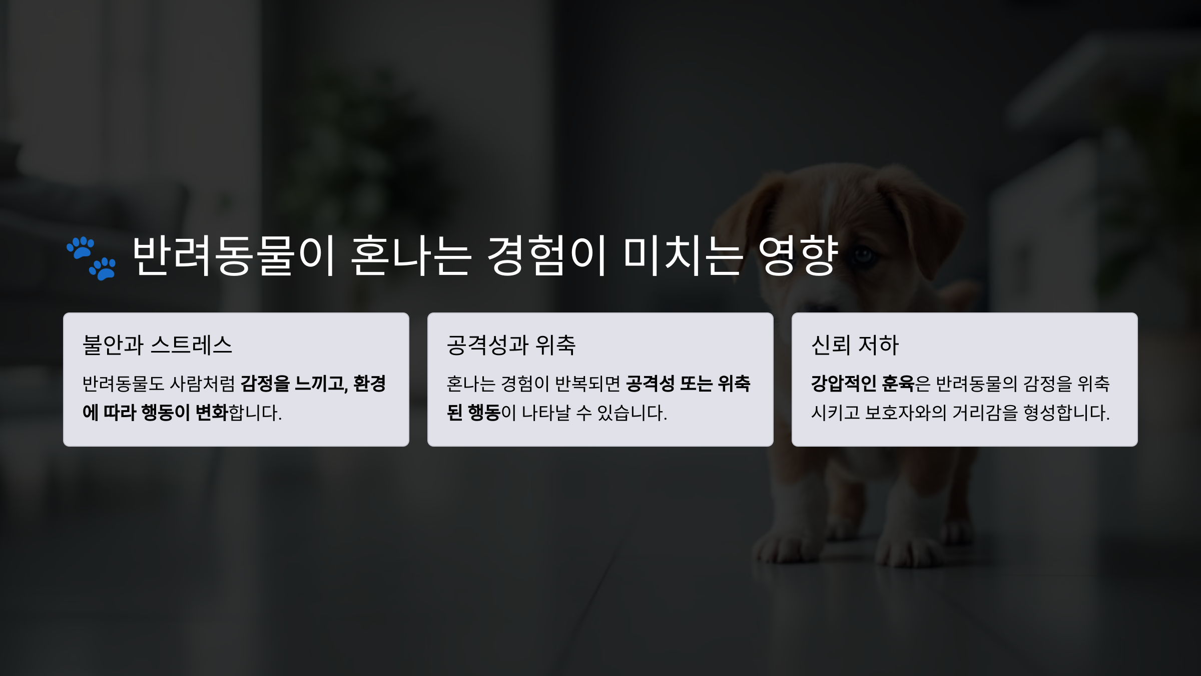 - 반려동물이 혼나는 경험이 미치는 영향