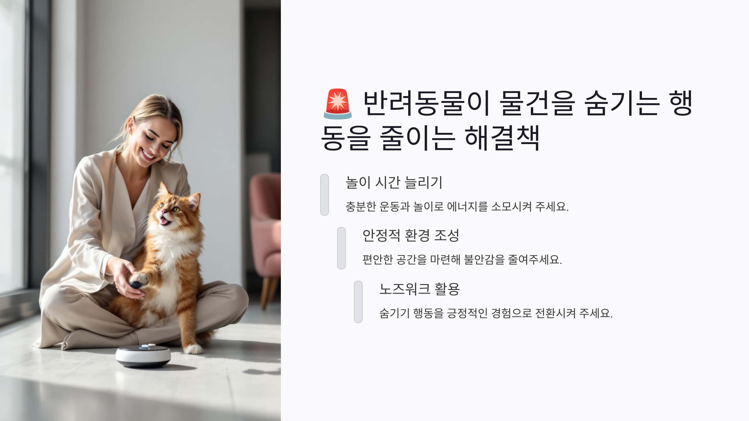 🐾 반려동물이 불안 없이 행복한 생활을 할 수 있도록 작은 변화부터 실천해 보세요!