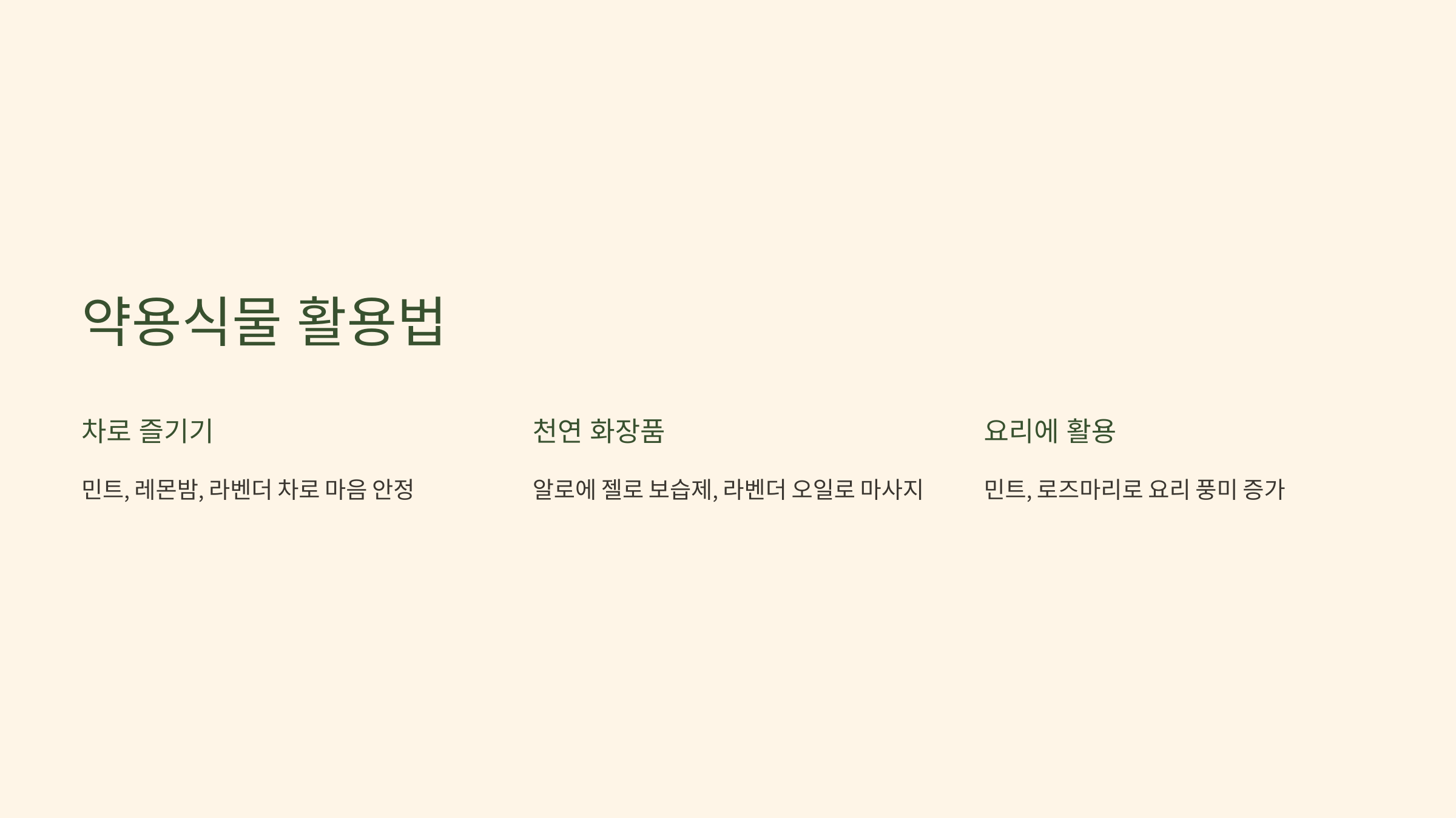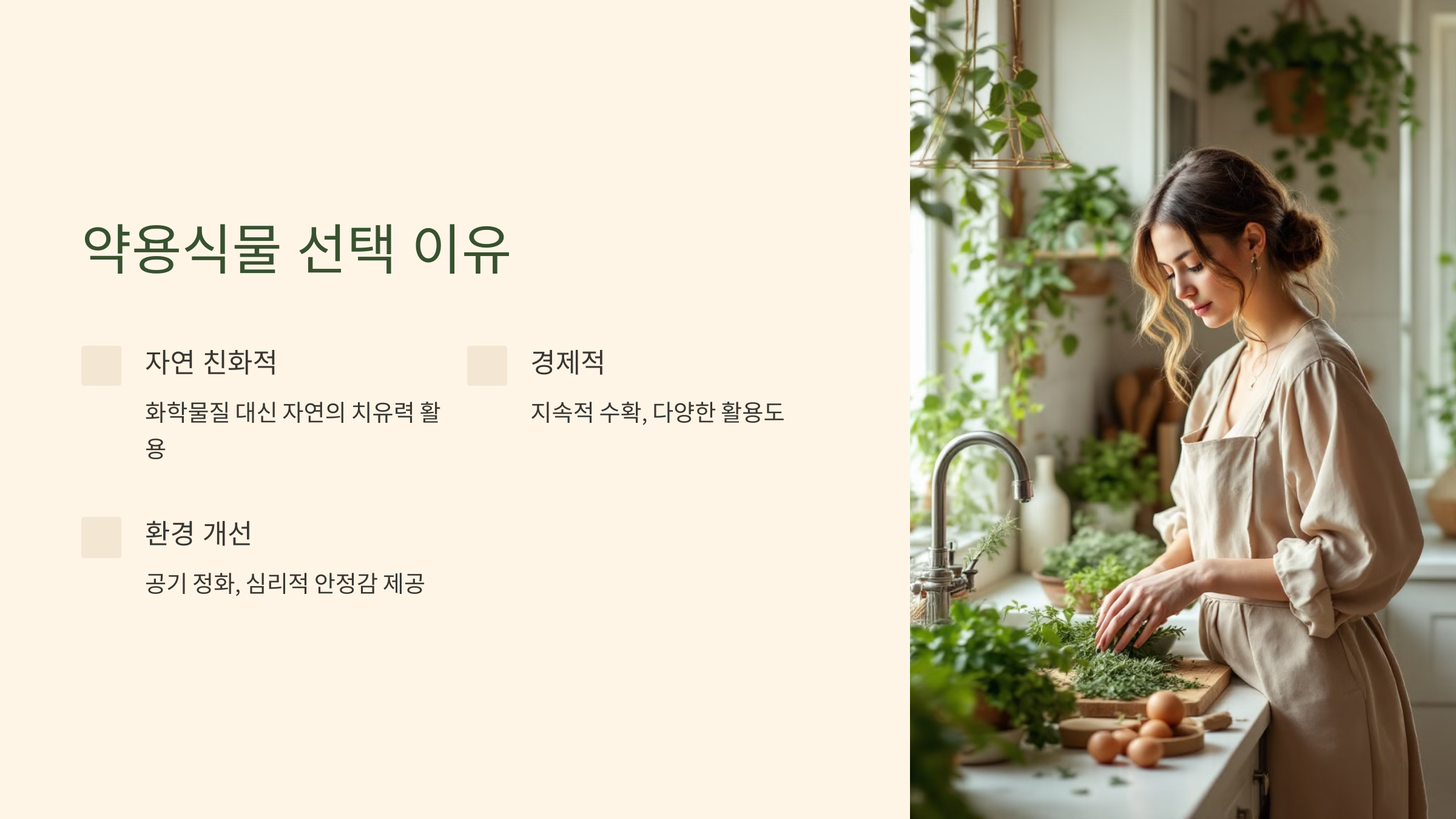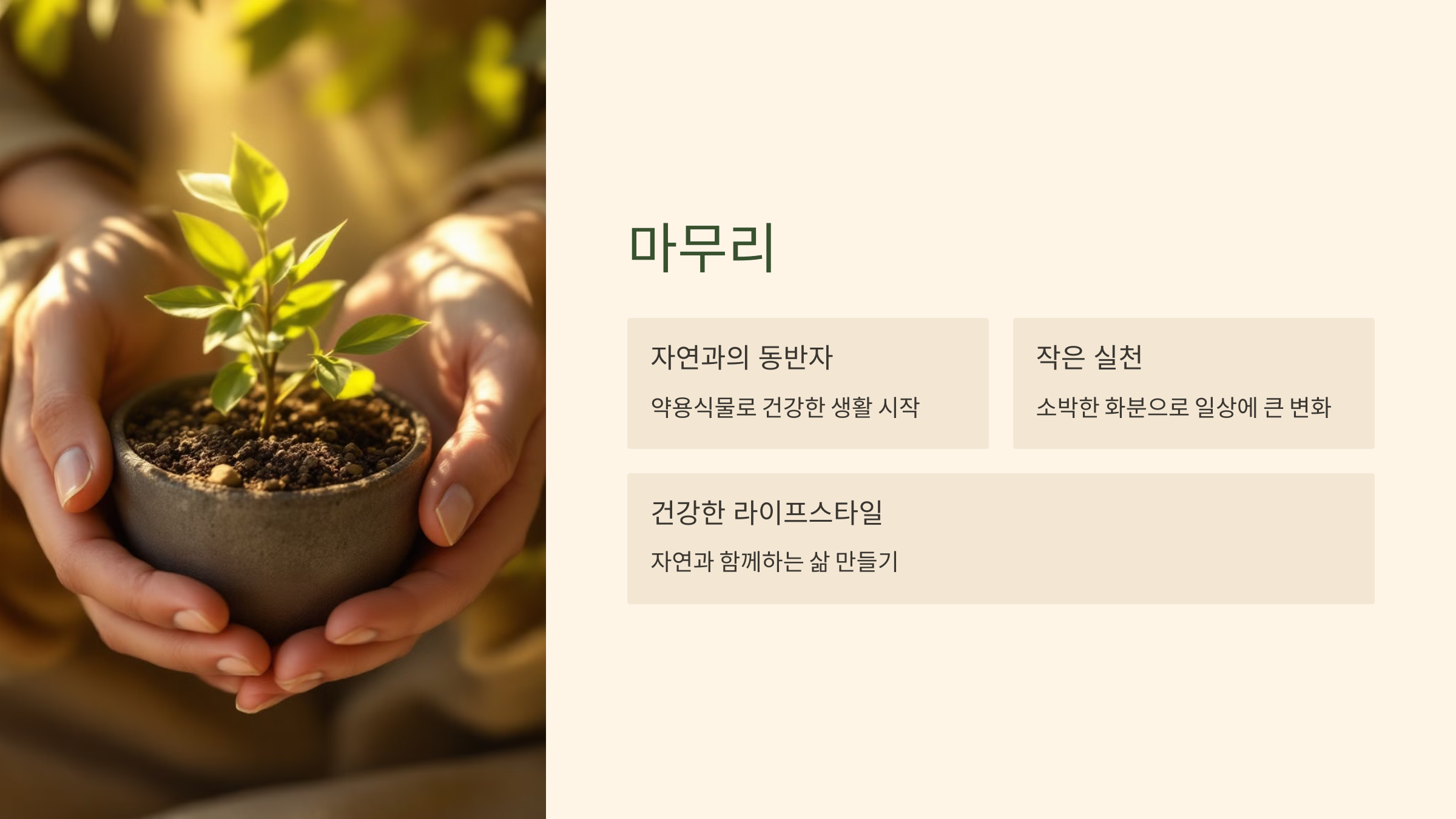 약용식물은 단순한 인테리어를 넘어 우리 삶에 실질적인 도움을 주는 동반자입니다. 약용식물을 집에서 키우며 자연과 가까워지고, 건강한 생활을 시작해보세요. 소박한 화분 하나가 일상에 큰 변화를 가져올 수 있습니다. 오늘부터 작은 실천으로 자연과 함께하는 건강한 라이프스타일을 만들어 보세요! 💚