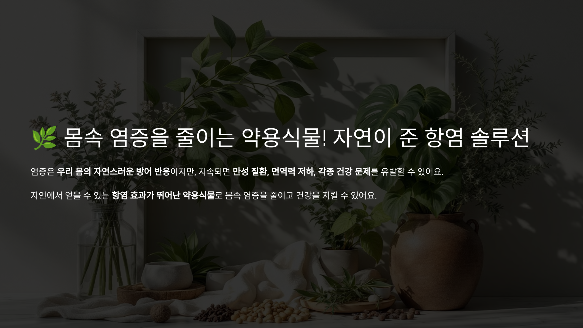 👉 자연 유래 항염 식물을 활용하면 염증을 조절하고 건강을 보호할 수 있어요!